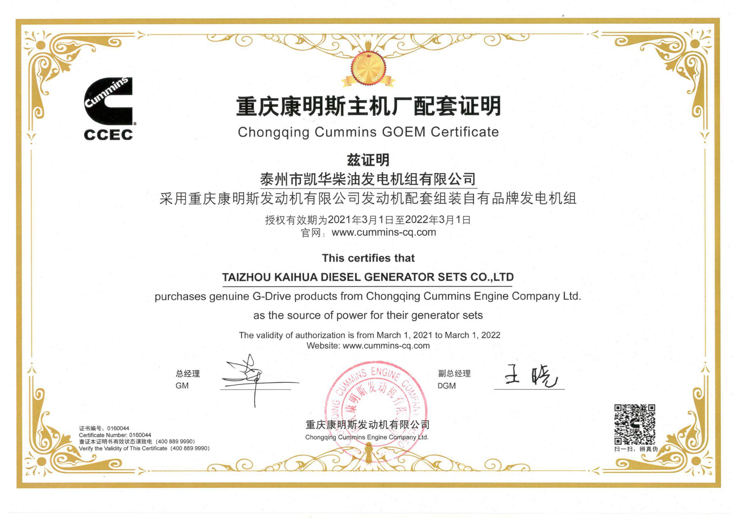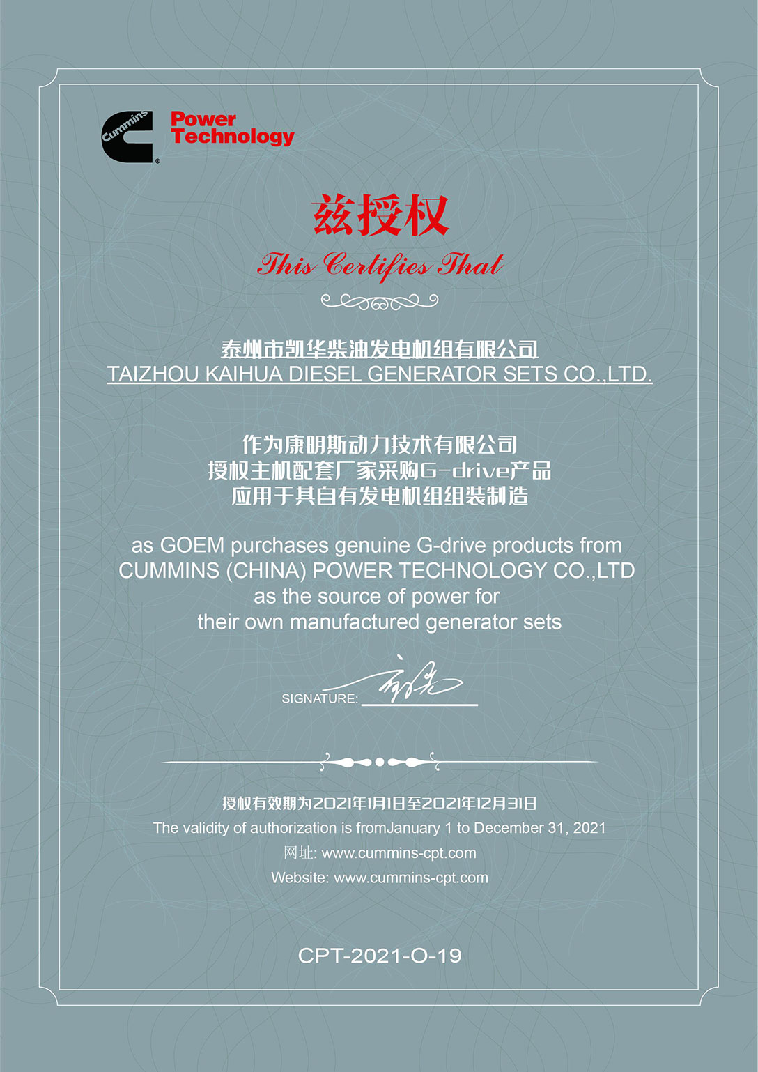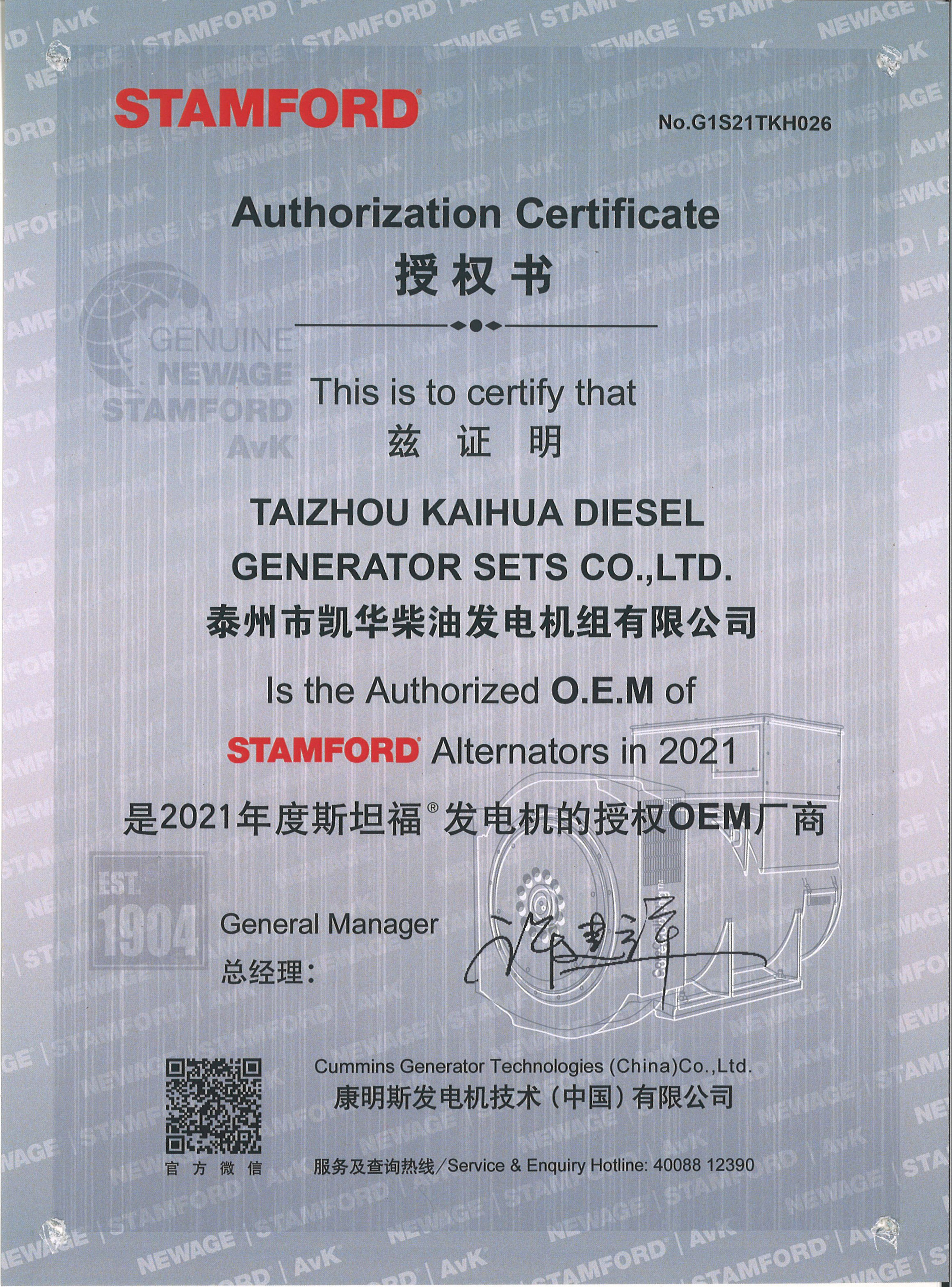泰州市凱華柴油發(fā)電機(jī)組有限公司創(chuàng)建于2003年,是一家集柴油發(fā)電機(jī)組燃?xì)獍l(fā)電機(jī)組的研發(fā)、生產(chǎn)、銷售為一體的高新技術(shù)民營(yíng)企業(yè),公司座落于“漢唐古郡,淮海名區(qū)”,具有“鳳凰城”美稱的祥泰之州——江蘇省泰州市,地處中國(guó)經(jīng)濟(jì)最發(fā)達(dá)的長(zhǎng)三角經(jīng)濟(jì)圈,水陸空立體交通,地理位置十分優(yōu)越。公司目前注冊(cè)資本金11800萬(wàn)元人民幣,生產(chǎn)基地占地六十畝,現(xiàn)有各類高素質(zhì)員工一百多名,專業(yè)技術(shù)人員達(dá)46人,其中高級(jí)技術(shù)人員16人,年銷售額近6億元。 公司主營(yíng)產(chǎn)品:3~3000KW陸用柴油發(fā)電機(jī)組,15~600KW移動(dòng)拖車(chē)電站,12~1000KW船用應(yīng)急柴油發(fā)電機(jī)組,各種靜音型、中高壓、多機(jī)并聯(lián)、燃?xì)獾忍胤N機(jī)組以及進(jìn)口系列柴油發(fā)電機(jī)組,可滿足不同客戶的一切電力需求,還可滿足用戶不同電壓、不同頻率的要求。凱華公司是康明斯品牌的授權(quán)代理商,專業(yè)生產(chǎn)供應(yīng)康明斯柴油發(fā)電機(jī)組。